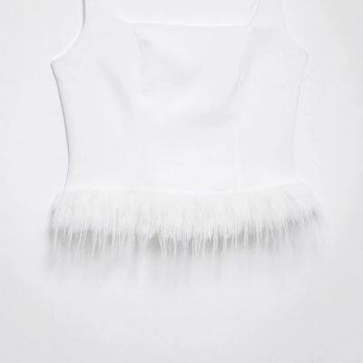 New style European and American style solid color feather trim stretchy bodycon halter top