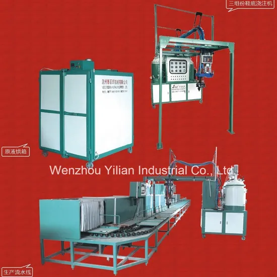 We are professional and leading manufacturers of PU Pouring Machines based in Wenzhou, China and has more than 15 experiences. This conveyor type PU pouring machine is specialized for producing double color, doulbe density and transparent soles, DIP shoes & slipper $ sandal, outsoles, closed shoes. This equipment is composed by low preasure pouring system, hyduraulic oil heating system, AC drive control system, microcomputer measuring data control system, auto cleaning system, cooling system etc. Conveyor Infrared-tube heating system can save 30% energy comparing to oil or electric heating. Its main characteristics are as follows: