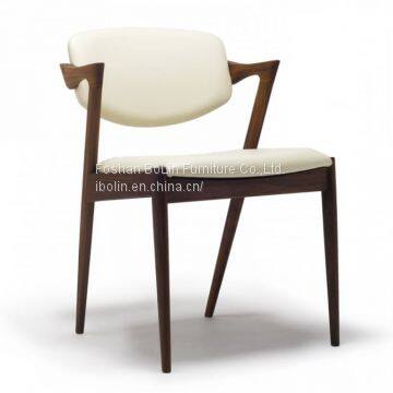 The No.42 is one of the most iconic chairs by Danish designer Kai Kristiansen. This chair is spacious and comfortable, enhanced by the inclining back. Its shape is characterized by the edgy half arm and inclining rear legs. There is a choice of woods for the frame, and a range of leathers and fabrics for the upholstery - contact the store for more info.