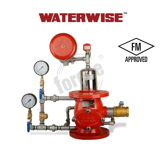 Model WAV-1 Alarm Check Valve is a wet pipe sprinkler system water supply check valve that makes possible the installation of sprinkler systems in buildings not subject to freezing temperatures. It is designed so that water pressure in the piping system will hold back water pressure at the valve until a significant flow of water occurs such as a sprinkler is activated.The Alarm Check Valve serves as a check valve by trapping pressurized water above the clapper and preventing reverse flow from sprinkler piping.The valve is trimmed with a water bypass line. The bypass line allows pressure surges to enter the system and to be trapped above the alarm check valve's clapper without the clapper lifting and causing false alarms.