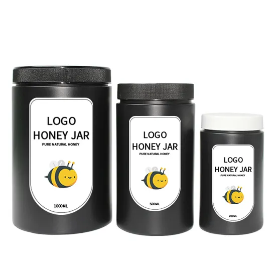 Product Description 250ml 500ml 100ml Cylinder Storage Honey Spice Jars with Black Screw Plastic Caps