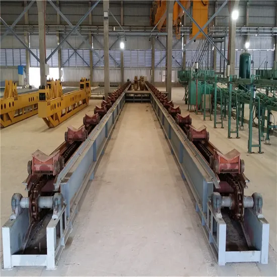 The production line is consist of 6 major parts: 1. Raw material mixing system, 2.Steel cage making system, 3. Concrete feeding and placing system, 4. Centrifugal shaping system, 5. Conveyor system, 6. Hanging and spread system.