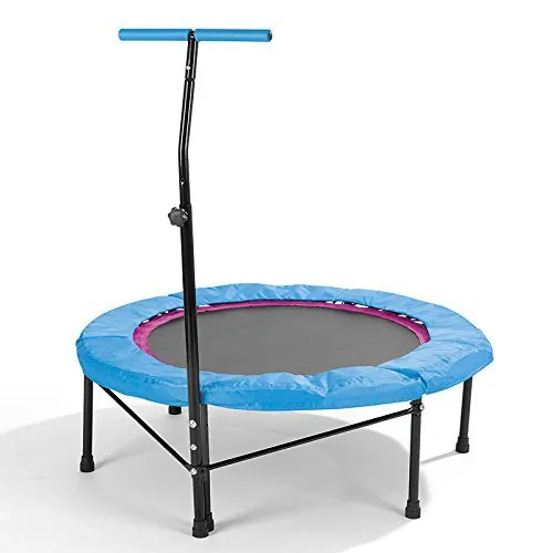 Material UpgradedThe second-generation upgraded version, thickened steel 3 mm, high-strength stainless steel preservative spring. 3000 continuous jump experiments. Make sure you can jump with confidence! Safe Adjustable BarHeavy-duty handle bar provides FOUR levels adjustable ranged from 2'6" to 3'5" (on the mat) designed for kids & adults. Just jump! Portable TrampolineWith unique frame construct, folded size less to 1/4! Easy to storage your trampoline anywhere, bed, sofa, car trunk, closet, etc. Jumping SystemThe unique 32 CLOSED SPRINGS connect easy-to-clean waterproof pp mat provides a powerful elastic recovery system to make suitable for over 6-year-old jumping efficient and safe. Folding Oxford PadFour holes construct allows you to fold trampoline without taking off the pad. Waterproof, Anti-scratch, Easy-to-clean. Magic Indoor Exercise10 Minutes bounce exercise equals 1-hour jogging, 30 minutes cycling or 20 minutes swimming. Let trampoline become a habit, as a part of your life. Lifetime ServiceQuick reply within 24 hours. Parts warehouses all over the US. Make after-sales service easier and effective. Fun and Efficient Exercise Fitness trampolines not only is lightweight, safe and quiet sports equipment but also provide a way more fun to exercise. Daily 10 minutes of jumping would efficiently burn calories, strengthen blood circulation, equals 1-hour jogging, 30 minutes cycling or 20 minutes swimming.