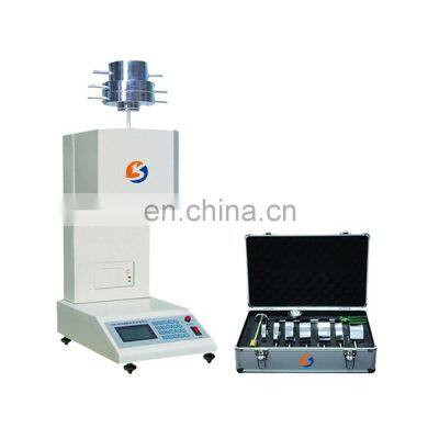 XNR-400D Melt Flow Index Tester, MFI Test Equipment 1. Application:Melt Flow Index Tester suitable for determining the melt flow rate (MFR) of thermoplastic plastic such as polyethylene,polypropylene,POM,ABS resin,Polycarbonate,Polycarbonate . 2. Characteristics:2.1.Use Industrial PLC programmable controller, LCD operation platform, single temperature unit,LED digital display.2.2.Test measures: melt flow rate (MFR) or melt volume flow rate (MVR).2.3.Has the temperature calibration function. 3.Technical parameters:ModelXNR-400BMeasuring Range0.1-800.00g/10min(MFR) 0.1-800.00 cm3/10min(MVR) Precision Of Temperature ControlRoom Temperature - 450°cPrecision Of Temperature±0.2°cPrecision Of Time0.1sDisplacement Precision 0.01mmLoadFull LoadCutting ModeManual, By Time, Automatic ControlScrew Barrel Internal Diameter9.550mm ± 0.025mmScrew Barrel Length160mmCavity DieTungsten Carbide, L 8.000mm±0.025mm, Internal Diameter 2.095mm ±0.005mmPower0.45 KWPower SupplyAC220V, 50HzDimension400mm*500mm*600mmNet Weight65 KG XNR-400B Plastic Melt Flow Index Tester, MFI Test Equipment Factory:Cooperative customers: