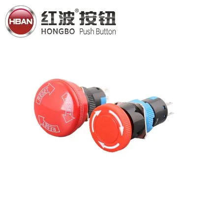 HBAN 16mm plastic 1no1nc two normally open pin soldering terminal Emergency Stop Switch IP65 Waterproof