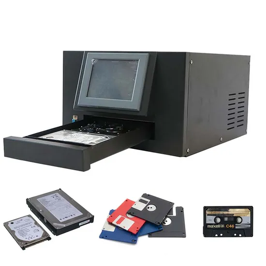 HD200 is the only solution in the market able to degauss two hard drives at the same time and erase high coercivity data from magnetic based storage devices and removable magnetic media by applying a strong magnetic field that guarantees compliance with safety requirements of CE and confidentiality requirements of Chinese State Secrecy Bureau and PLAISTEC. Modern media device manufacturers recommend a 6000-7000 Gauss field be passed through their devices to render the data completely destroyed. With its magnetic field intensity up to 12500 Gauss theHD200 can easily erase also large capacity, high-density magnetic media hard drives quickly, uniformly, at once. Its erasing area can contain 2 hard drives (width 8.9 cm) or 8 hard drives (width 6.35 cm). It can afford about 50 cycles continuously, making it possible to process up to 800 media devices per hour. Product Parameters