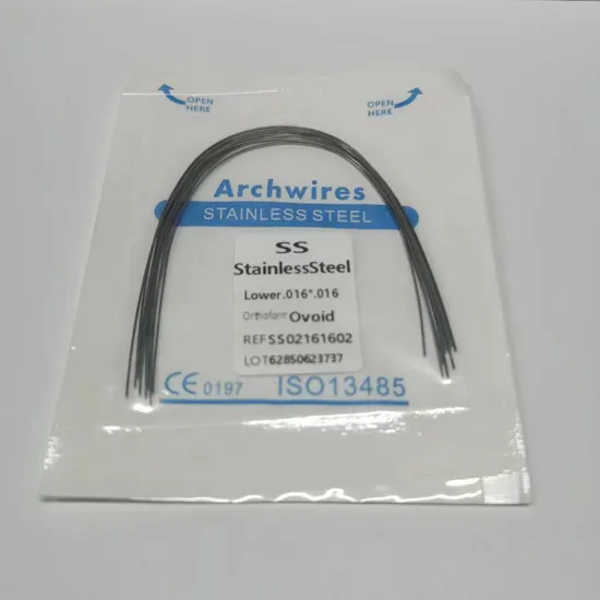 1.Archwire stainless steelRound Stainless Steel Arch wire: 0.012/0.014/0.016/0.018/0.020Stainless Steel (Rectangular) : 14*25 / 16*16 / 16*22 / 16*25 / 17*22 / 17*25 / 18*18 / 18*22/ 18*25 / 19*25 / 20*20 / 21*252.Packing