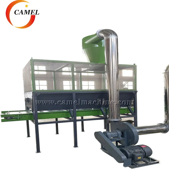 The whole PP woven bag washing recycling machine process includes shredder, water rinsing, friction washing, drying and washing system, the final flakes humidity will be less than 5%, it could send to our compactor granulating machine to make new granules directly.