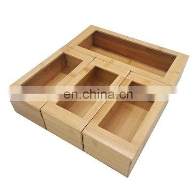 Natural Bamboo Ziplock Bag Organizer Clear Drawer Storage Box Openable Top Lids/ziplock Bag Storage Organizer 4 Pieces