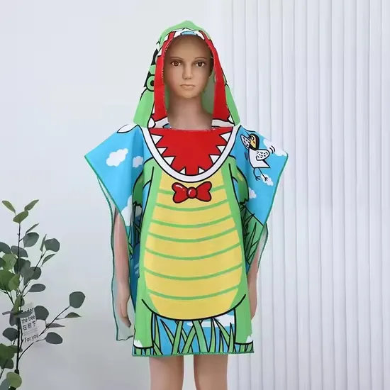 ★ 100%polyester kids hooded poncho beach towel is good for printing. 60x120cm is good size for kids.