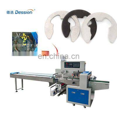 Full-automatic circlip pliers / circlip Horizontal Packaging Machine Price OPERATION VIDEO BY DS-600D (PLEACE COPY THE ADDRESS AND PASTE IT TO THE WEBSITE ):https://youtu.be/_7Q0bwDZKds 3D DRAWINGS AVAILABLE FEATURES 1.Efficient: Bag - making, filling, sealing, cutting, heating, date / lot number achieved in one time; 2. Intelligent: Packing speed and bag length can be set through the screen without part changes; 3. Profession: Independent temperature controller with heat balance enables different packing materials; 4. Characteristic: Automatic stop function, with safe operation and saving the film; 5. Convenient: Low loss, labor saving, easy for operation and maintenance. Technical Specifications between Dession similar machines ModelDS-250DDS-350DDS-400DDS-600DFilm WidthMax. 250mmMax. 350mmMax. 400mmMax.600mmBag Length65-190mm or 120-280mm (L)90-220mm or 150-330mm (L)180-400mm (L)130-450MM (L)Bag Width30-110mm (W)50-160mm (W)50~190mm (W)60~280mm (W)Product HeightMax. 50mm (H)Max. 70mm (H)Max. 70mm (H)Max. 100mm (H)Film Roll DiameterMax. 320mmMax.320mmMax:320mmMax:420mmPacking Speed40-230 bags / min40-230 bags / min30-180 bags / min30-150 bags / minsMachine Size(L)3770X(W)670X(H)1450mm(L)4020X(W)745X(H)1450mm(L)4020X(W)770X(H)1450mm(L)3990X(W)1000X(H)1468mm MACHINE PARTS SHOW Application Dession Horizontal Pillow plastic fittings packaging machine widely applied for various kinds of regular objects like food, medicine, daily appliances, cosmetic,metals, industrial parts, boxes, trays, toys, ice lolly and etc. Dession electrical accessories offer you 2 YEARS WARRANTY,& FREE LIFE TIME MAINTAINANCE Optional device for your choose: 1. Code applying printing machine2. Hole Punching Device(Pinhole, Round hole, the butterfly hole)3. Line Sealing Wheel4. Air-filling Device 5. Moire Terminal Sealing mould6. Punching Device5. End Sealing Conveyor Chain Plate DeviceContact us CertificationsQUALITY GUARANTEECE Certificate with European Standard Company Information Dession is a leading manufacturer of Rotary pillow packaging macine, Vertical powder / granules / liquid / Sauce packaging machine, Automatic Feeding line, flowing packing machine and supporting facilities since 2005. Dession has successfully developed more than 80 kinds of packaging machines and related equipment, widely suitable for food, medicine, chemicals, Industry accessories, hardware and so on. Dession workshop covers almost 10,000 square meters, around 120 labors including 8 engineers, 4 designers, Researching team 16 members, 5 core sales team with more than 20 salesman. Packaging & ShippingFor packingDession will clearing every parts, packed firstly with the film, then put in the plywood case ( Fumigation free)For shipping we can offer you the freight charges, no matter by sea, by air or by express, also you can designated the agent for shipping. Fair & ExhibitionHigh concentrating on Innovation of the Packaging MachineTake an active part in the ExhibitonDuring last 10 years, Dession has developed more than 30 partners all over the world , Dession automatic packaging machine has been shipped to many countries and area such as America, Brazil, Russia, British, Germany, India, Thailand, Malaysia, Vietnam and so on. Our ServicesWhat can we offer ? MADE TO MEASURE SOLUTIONS; TECHNICAL ADVICE CONCERNING PACKAGING; REMOTE TRAINING AND SUPPORT; DESPATCH OF SPARE IN THE SORTEST TIME. AFTER-SALE SERVICE 1. Manules/Videos of machine installation, adjusting, setting, maintenance are available for you. 2. If any problems happend and you can not find out the solutions, Telecom or Online face to face communication available 24 hours; 3. Dession engineers & technician are available send to your countries for services if you agree pay the expenditure; 4. Warranty: 2 years (Electric accessories ) and free life time maintenance (Excluding freight) ; 5. Dession has an independent team for after-sale service. What are you waitig for ? Contact me, get the latest design and price !!FAQ For any Questions 1. Q : Can your machine meet our needs well, how to choose the proper settings ? A : Dear, before quoting, please kindly consult us and providing: The packaging product name; Packaging bag size (length/width), Or the weight of each packaging bag; Packing speed; Bag types showing above or your own design;it will be more easier for us to recommend the most suitable packing machine for you to make your cost to the minimum. 2. Q: Do you have manual or operation video for us to know more about the machine? A : Yes, not only manual or operation video, 3D drawing also available to make as per your design,also the video we can make of testing the material from our packaging machine if your packing goods easier for us to find from our local market. 3. Q: How can I trust you for the first time business ? A: Please note our above business license and certificate. And if you don't trust us, then we can use Alibaba Trade Assurance service. it will protect your money during the whole stage of transaction. 4. Q: Can you explain me the whole transaction process ? A: Both sides reached cooperation intention - ---- Signed the Contract ---- Arrange the deposit to factory ---- Factory arrange production ---- Testing&detecting the machine before shipping ---- Inspection by customer or third agent or through online ---- Arrange the balance payment ---- Confirm the shipping details then delivery ---- Guild customer setting after machine arrived ---- Follow up and feedback with customer timely5. Q: Will you provides the door to door service? A: Yes. Please offer us your final destination, we will check with our agent to see if it available, and most of the area is ok for us to clearing and sending in your countries. BACK TO HOME