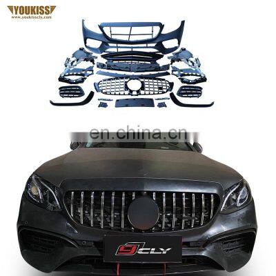 Product DescriptionSpecificationSubjectUkiss Genuine Front Car Bumper For Benz E Class W213 Upgrade E63SAMG Body Kit With GT Grille Install Together Bumper 17 18 19 20Product nameFront Bumper With GT GrilleMOQ1 set Stockin stockDelivery timeAfter you finish the payment, we can deliver for you at any timeDetails ImagesPacking & DeliveryAs for the delivery, we provide DHL, FEDEX, TNT, UPS, EMS... also could by Air, by seaIt's up to you, if you are not in a hurry, we suggest you choose sea.Company Profile If you have any questions, please feel free to contact us, we will uphold customer-oriented philosophy to provide you with the most professional, most comprehensive and highest quality service。FAQ1. how can we guarantee quality?Always a pre-production sample before mass production;Always final Inspection before shipment;2. why should you buy from us not from other suppliers? a.We have the first class equipment b. We will make the product to satisfy the customer Hold the flag of continuous improvementc.The strength support for realizing the higher ideal, from this moment we shall be of one mind and seek more higher better quality and more excellent credit and to realize the perfection in the unceasing creation. d.We provide car body kits, front grille, diffuser ,rear view mirror shell, spoiler, exhaust pipe, wheel hub and carbon fiber products and carbon fiber interior trim. e.We provide you 24 hours customer servicef.After sending, we will track the products for you. When you got the goods, test them,install, and give me a feedback.If you have any questions about the products, contact with us, we will offer the solve way for you.3. what services can we provide? Accepted Delivery Terms: FOB, CFR, CIF, EXW, FAS, CIP, FCA, Express Delivery; Accepted Payment Currency: USD, EUR, JPY, CAD, AUD, HKD, GBP, CNY, CHF; Accepted Payment Type: T/T,L/C,Credit Card,Western Union,Cash; Language Spoken:English,Chinese4: What about the delivery time?1-7 days ( most of products are in stock)5: Do you have any certificate?Yes, like certification.