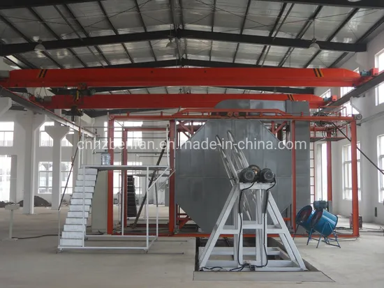 In this way, the operation is flexiable for manufacturing comparatively large product. Even for comparatively small product, productivity is high. Besides, equipment is relatively simple and easy to be maintained. At present, this kind of rotational molding machine is broadly used in our country.