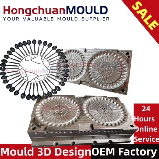 Hongchuan Mould offer plastic cutlery mould such as 32cavity, 64cavity and stacking 48+48cavity for plastic spoon moulds, plastic knife mould, plastic fork mould can run with cycle time of 7seconds. And plastic tray mould, thinwall plastic containers 500ml and disposable 1L box mould in 5seconds cycle time in four cavity.