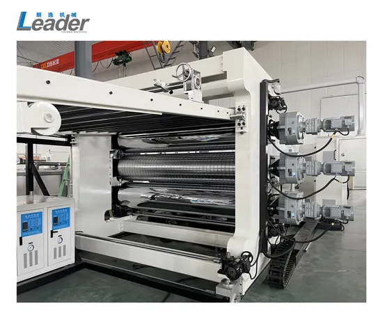 PART 2 THIS LINE CONSITS OF:1. vacuum feeding machine 1 set 2. high efficiency single screw extruder 1 set 3.drying hopper 1 set 4. Hydraulic exchanger unit 1 set 5. T-type die head 1 set 6. Three roller calendar 1 set7. Rollers thermocontrolling unit 1 set 8. Cooling frame and edge cutting unit 1 set 9. Haul off machine with double rubber rollers 1 set 10. plastic cutting machine--guillotine 1 set 11.sheet stacker 1 set12. Twin position sheet coiler 1 set