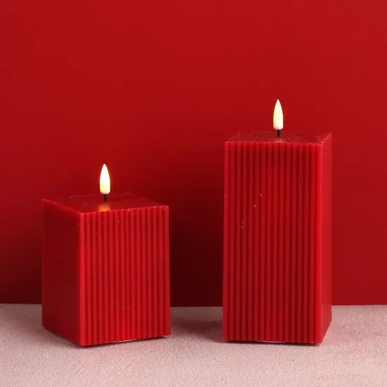 Product Description Set of 2 New Design Square Shape Red Paraffin Wax Remote Control LED Flameless Candle