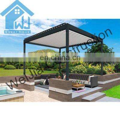 Product DescriptionOur this aluminum pergola is 100% water proof with internal gutter .We can do electric and manual control.The post size of our this aluminum pergola is 150x150x3mm which is very strong to hold the top louver roof system .We can custom any sizes for the aluminum pergola and you can choose motorized and manual control way.As we have our own color cutsomized work shop , we can custom any colors base on RAL color card .For the other accessories like side curtains/blind , LED lights ,heater ,wind/rain sensor , fan and so on , we cal also provide. And we can provide very detailed installation videos, so don't worry about the installation .Welcome to contact and inquiry .Product Name:Motorized rain cover roofPost size:150x150x3mm thickness aluminum profile very strong for aluminum pergola systemWidth Range:2.5m - 13.5mElectric Motor's Voltage:110V Or 230VRemote Control:1 Channel or 5 ChannelGutter:Complete with Gutter and Rain Spout for Inbuilt PVC DownpipeLouvres Blade Size:150mm /200mm/ 265mm Aerofoil Type Available, Waterproof Eeffictive DesignPivot Bolt:Highly Durable Aluminum with PP Blade End CapsOther Componentries:Heavy-duty internal fittings, Plastic bush, SS Grade Stainless Steel ScrewsTypical Finishes:Durable Powdercoated for Exterior ApplicationColors Options:We have our own color customized factory , we can custom any colors for youMotor Certification:TUV,CE,SGSHow the water come out :Our aluminum pergola with internal gutter system , the rain/water will come out from the bottom of post,like below picture . ProjectFactory and Package5 Stars review :FAQQ1:How to guarantee the quality of the products?We have our own QC team to control the products quality for all our clients'orders before loading.Q2:How long does it take to install a louvres roof /pergola?It depends on te skills,help and tools, usual 2-3 workers will finish the installation 50m 2 in one day.Q3:It is the louvre roof /pergola rain proof?Yes,the normal weather cnditions,even heavily rain,the roof /pergola will not let in rain.Q4:How does the rain sensor work?The control system normally programmed to close the louvres when rain is detected.Q5:Are louvres roof/pergola energy efficient?The adjustable louvres blade help to reduce heating and controlling the amountof direct sunlight.Q6:Can the louvres roof/pergola used next to the sea?All accessories in aluminium alloy,stainless steel and brass to avoid any rust and corrosion.Q7:How we do business?Take care of your prducts and serve your needs.Contact us by E-mail or by phone. Other Main Products
