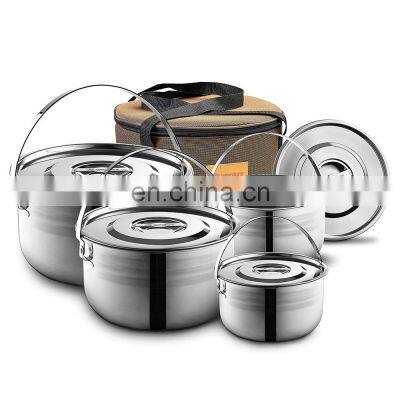 Stainless Steel Camping Cookware Set Campfire Cooking Pots and Pans Kit with Travel Tote Bag for Hiking Backpacking Barbecues