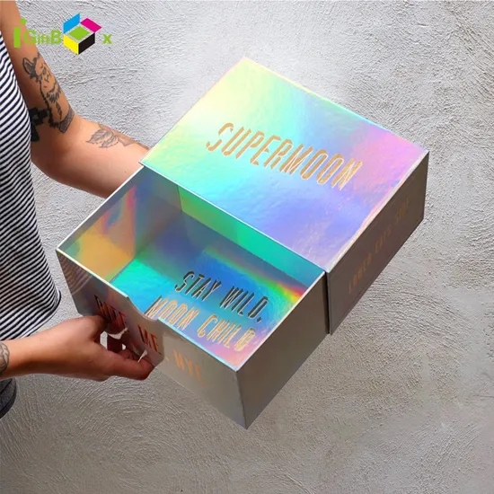 Custom Sliding Slide Paper Cardboard Iridescent Hologram Holographic Drawer caixa de presente caja de regalo Box Packaging Drawer Gift Paper Box with Puller Open