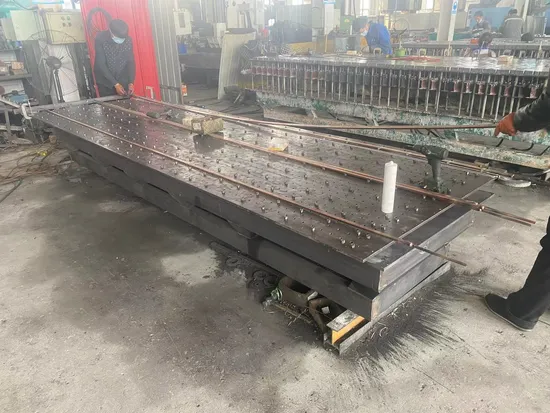 Fifth, the color: According to customer requirements for FRP grating equipment the generalfactony color for the qeneral-purpose motor aray.Six roof thickness: 14mm, material S45c steel, roof surface miling machine trim, large-scalesanding machine high-speed polishing. Seven, bottom plate thickness: 14mm, material Q235Alarge gantry miling machine planning. 8, the trip part: the stroke of the equipment is the centralpart of the movement of the mold, we use 25 mm thick $45c steel plate, after miling machineprecision machining to ensure that the size of strict fit, combined with eight 45 mm square steeas the support, to ensure that the whole Stroke advance and retreat smooth operation. Cylindesize diameter 1l0mm, lenath 350mm, cylinder pillow selection of wide Q235A forged steel, superpressure.