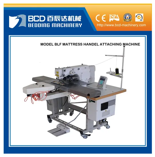 This machine is specialized for attaching the handle strap to a mattress border , it is characterized with fully automatic both end folding , handle feeding ,positioning ,auto sewing , convenient operation , high-accuracy positioning system and beautiful sewing stitch . U disk attached with this machine is of various different patterns , users may select favorite freely . Main components and parts of this machine are fully Japanese made as: Sewing head parts and SMC cylinders .