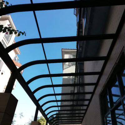 The Aluminum canopy consists of roof and main structure and accessories. The roof is use of virgin Makrolon
