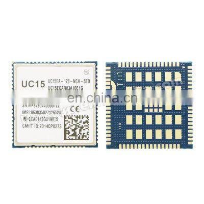 DescriptionOverviewUC15 is a series of cost effective UMTS/HSDPA module featuring maximum data rates of 3.6Mbps downlink and 384Kbps uplink. Designed to be compatible with GSM/GPRS M10 module in the compact and unified form factor, it provides a flexible and scalable platform for migrating from GSM/GPRS/EDGE to UMTS/HSDPA. This enables integrators and developers to design their applications once and take advantage of true worldwide coverage and service flexibility afforded by the combination of the two most prevalent cellular technologies worldwide.The advanced LCC package allows fully automated manufacturing for high volume applications and copper-surfaced bottom design optimizes heat dissipation. The compact profile in cost optimized SMT form factor and high integration level enable integrators and developers to easily design their applications and truly benefit from the module’s small size, low power consumption and mechanical intensity.A rich set of Internet protocols, industry-standard interfaces (USB/UART/ADC/NETLIGHT/PCM) and abundant functionalities (USB drivers for Windows XP, Windows Vista, Windows 7/8/8.1/10, Windows CE, Linux, Android/eCall) extend the applicability of the module to a wide range of M2M applications such as automotive, smart metering, security, CPE and wireless POS.Key Benefits● Worldwide UMTS/HSDPA and GSM/GPRS/EDGE coverage● Minimal SMT form factor ideal for small end products with tight space● High-quality data and image transmission even in harsh environment● Fast time-to-market: reference designs, evaluation tools and timely technical support minimize design-in time and development efforts● Robust mounting and interfacesFrequencyUC15-EUC15-AUC15-TUMTS900/2100MHz850/1900MHz850/2100MHzGSM/EDGE900/1800MHz850/ 900/1800/ 1900MHz850/ 900/1800/ 1900MHzRegionEMEA/ APACAmericaThailandCertificationCE/ GCF/ DOC (for Russia)/ CCC/ SRRC/ NAL/ ICASA/ RCM/ NCC/ OFCAFCC/ PTCRB/ AT&T/ IC/ RogersNBTC/ RCMWhy Choose UsFAQQ1. What is the minimum order quantity for your products?A1. Minimum order quantity starts from ONE piece.Q2. What's the quality of your products?A2. We have professional QA/QC team to ensure the quality before shipment. We provide 1 year warranty for all the new and original products.Q3. Is this product free of shipping or free samples?A3. Regularly the sample and shipping cost will be at the buyer's account. But in specific case, we may take these costs. Please kindly check with us the details by email. Thank you.All Categories4G 5G ModuleGPS ReceiverGPS AntennaGSM/LTE/WiFi AntennaGSM/LTE+GPS AntennaGNSS/GPS Module2G/3G/4G ModemGPS TrackerRF Coaxial / ConnectorSIMCard HolderSensorIC