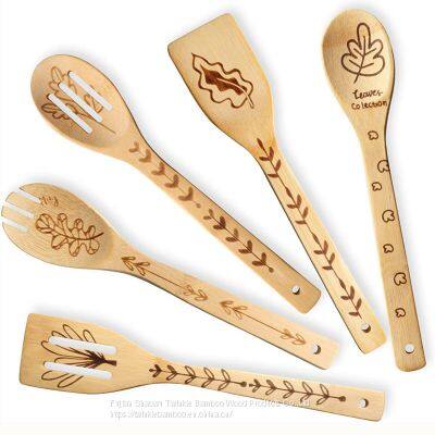 Christmas gift for family,bamboo wood utensil set engraved kitchenware customized