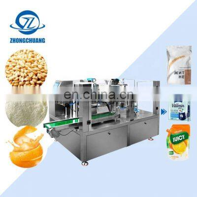Product Description Model No.ZC-D200Product Namemini doypack baby food spout pouch spoon packing machine granuleFunction Bag-feeding, Filling, Wrapping, Sealing Voltage380V 50/60hzPacking Speed 25-60 bags /minsPacking Bag SizeL: 100-350mmW : 60-200mmApplicable IndustryFood, Drink,Commodity, Medical, Chemical etcSuitable Bag TypeStand-up pouch, Zipper Bag, Film, M pouch etcDimension (L*W*H)5258*3610*3655mmMachine Surface material #304-Stainless steel Gross Weight 1300KGAir Compressed air consemed≤0.6m³ / minAccuracy ±1g (≤100g) / ± 1%( >100g) according to materialWarranty 1 year Customer Evaluation Company Information