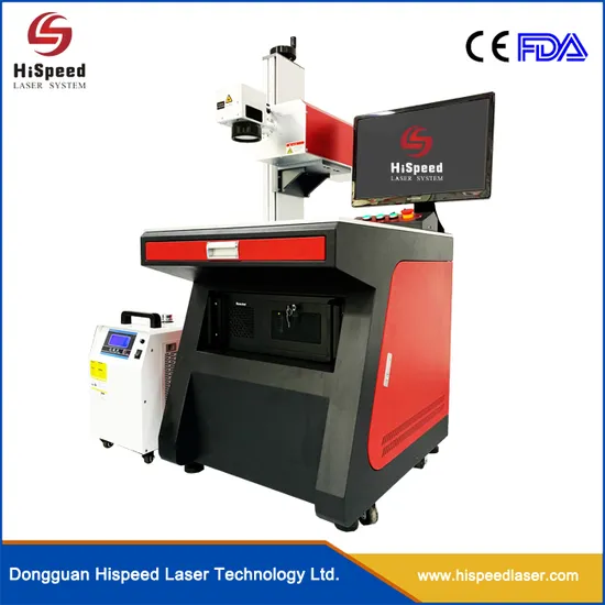 Hispeed UV Laser Marking Machine 3W 5W 8W adopts three order intracavity frequency doubling (THG) technology. Compared to infrared laser, 355nm ultraviolet laser has extremely small laser facula, which reduces the mechanical deformation to a significant extent and diminishes the influence of heat-process to a very limited area.