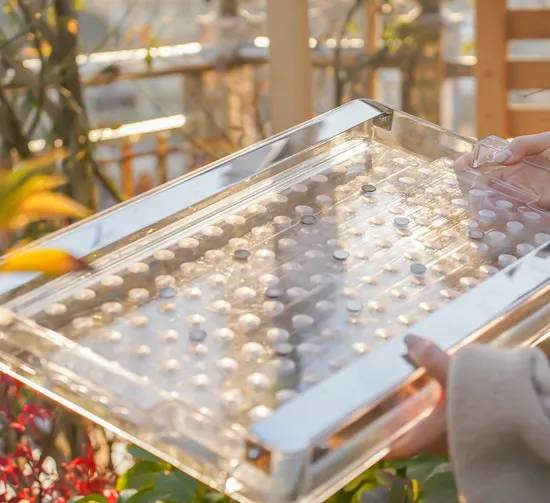 2. Put rapeseed in the seedling tray seeder, and shake it gently to roll the rapeseed into the holes;