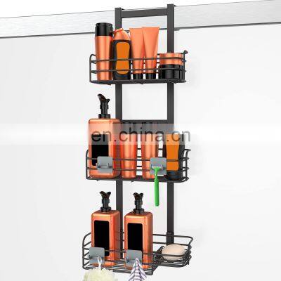 Over The Shower Door Caddy Pantry Organizer Rack with Reliable Hooks, Sturdy Rust Proof Hanging Shower Organizer Shelf Basket