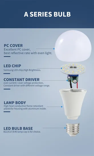 | 5W | 5W±10% | YY-A55-05 | 55*97mm | Rated Voltage:AC85-265V/AC110V/AC220V LED Chip:SMD 2835 Luminous Efficacy:80-100LM/W Lumen Maintenance≥97%(after 3000 hours) PF>0.5 CRI:80 Beam Angle:270° CCT:3000-6500K Power Source: Constant Current IC Driver,DOB,linear IC Driver are available Lamp Cap:E27/E14/B22 Material:PC+Aluminum Average Lifetime:50000 hours |