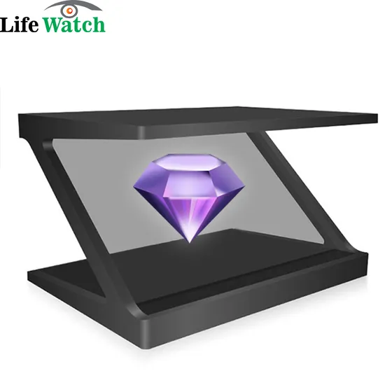 Product Description 3D holographic showcase accepts three-dimensional animation suspending product image system inside of showcase. It is consist of showcase, 3D glass, system mainboard. Based on 3d glass projection image theory, it could set up three-dimensional model in order to proceed, then 3D virtual content matches with actual product, whole system could display vivid product exhibition system. 3D visual effect brings Stereoscopic visual impression.