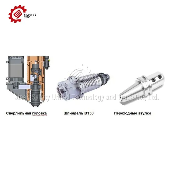 10. The power head spindle adopts Precision Spindle (high-speed internal cooling) brand "KENTURN" from Taiwan, with a spindle taper BT50, featuring a butterfly spring hydraulic puller mechanism, and an air-liquid cylinder for loosening and grasping the tool, replacing the tool very convenient. It can be equipped with hard alloy internal cooling drills and high-speed steel Fried Dough Twists and has a spindle taper cleaning function.