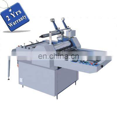 YFML520A Electromagnetic Heat Hydraulic semi automatic Cardboard Laminating Machine, A4 A3 hot plastic film laminatorVideosVideo demonstration only for referenceVideo 01: /watch?v=L6cfVTiu3QEVideo 02: /watch?v=sax-kzro9L8Product Description Features1. Frequency converter is equipped for easy speed adjustment2, Paper sheets feeding manually4. Paper regulating plate is adjustable upon paper size.5. Paper overlap regulating system: When the operator input overlap length on touch screen, the overlap regulating system will control overlap length automatically according the preset parameters.6. High-precision Chrome plated heating roller is equipped with built-in electrical tube heater which makes temperature rise instantly. The laminating temperature is adjustable against different application.7. Pneumatic pressuring system provides steady pressure for good laminating quality. 8. Film cutter cuts film width to meet paper size and the waste film can be collected in spindle.9. Film perforating wheel perforates film edge for easy sheets separating.10. Anti-curvature device: The laminated paper goes through anti-curvature device and won’t curl after cutting.11. Heating temperature can be adjusted on the touch screen for stable and constant lamination Parameters:ModelYFML520AYFML720AYFML920AMax Laminating Width520mm720mm920mmLaminating Temperature60-130℃60-130℃60-130℃ Paper Thickness105-500gsm125-500gsm125-500gsmLaminating Speed0-30m/min0-30m/min0-30m/minGross Power9kw13kw15kwTotal Weight1000kg1600kg1800kgDimensions3300*1150*1450mm4000*1500*1600mm4000*1700*1600mm Detailed Images Automatic Overlap System Front Control Panel for Easy Operation268mm Diameter Sized Heating Cylinder Perforating and Cutting KnifePost-Perforating KnifeCorrugated Delivery System for Easy Paper Collection Service Team Pre-sale Service After-sale Service A: Inquiry and consulting support A: English manuel and video instruction B: Sample testing support. B: Your technians can get trained in my factoryC: Invoice and Contract confirmation. C: Engineers available for overseas if necessary Certifications FAQ1.Q: What information should i let you know if i want to get a quotation?A: What is your Max and Min product size in mm?B: What is your paper thickness in GSM?C: Some photos of your finished products2.Q: Are you a manufacturer?A: Yes we have been manufacturing such machines over 20 years and also we are a professional exporter. 3.Q: What about the payment term?A: Mostly 30%T/T in advanced, 60% when machine is finished after inspection and last 10% against copy of shipping documents..4.Q: What is the warranty?A: Two year warranty after sales (During the warranty period, we respond for free parts dispachment and the buyer is only required to cover the courier express once the machine has any problems. However we do not respond for the consumables and parts broken by mistakingly operation)5.Q: What is your aftersale service?A: Any questions will be responded within 24 hours by email, skype, phone call or Whatsapp/Wechat (+86-18258286679). In addtion, we have professional engineer available for overseas service..6.Q:What is the delivery time?A: Mostly it takes 10 to 30 workdays after receiving the deposit and confirming the drawing or samples as required.Packaging & ShippingWooden Case Loading and Transport Contact UsYOU ARE WELCOME TO CONTACT US ANYTIME AVAILABLE. Mobile/Whatsapp/Wechat: +86-18258286679 Email: utecs@ , utecsinter@ , danielsuer@ Skype: danielsuerWeb: