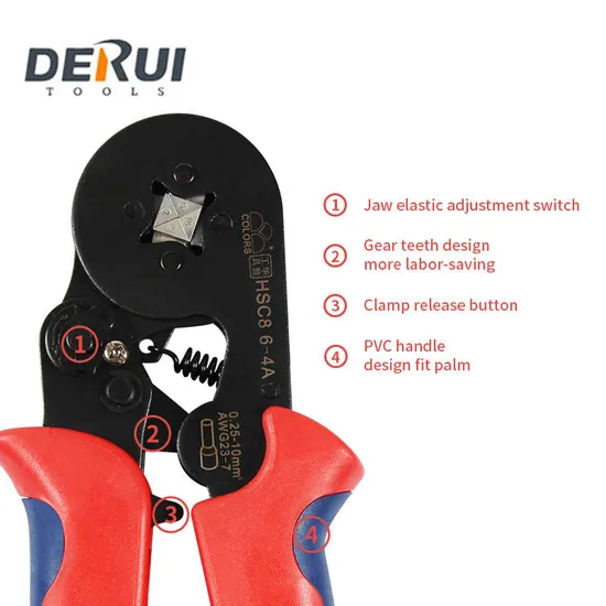 HSC8 6-4A MINI-TYPE SELY-ADJUSTABLE CRIMPING PLIERS FOR TUBULAR BARE TERMINALS