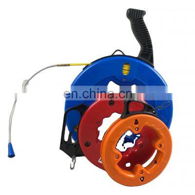 Product Description 4mm 30m Fiberglass Fish Tape For Electric Wire Cable Puller Steel Fish Wire TapeFish tape is a range of conduit fittings for electrical cable management,offering a high level of mechanical strength.Guide the fish tape through narrow openings, then attach wires to the pulling loop and guide them smoothly to new location. Reel winds up and stores excess tape as wire is pulled.Built-in thumb lock holds wire in place.Specification 1. Item Name: Steel Fish Tape and Fiberglass 2. Material: Steel 3. Diameter: 3mm, 4mm, 4.5mm,5.2mm 4. Length: 15m,18m, 30m, 45m, 60m, 73m 5. Specification:30FT 50FT 150FT 240FT ,etc 6. It can be easily guided or "fished"through narrow passages and confined spaces.Rod Diameter(mm)Rod Length(mm)410415420425430Usage of Fish wire tape :1. Hold the black ring handle in one hand2. Pull out the steel cable with other hand allowing the red drum to spinInstruction to roll up steel cable1. Hold the blank ring handle in one hand2. Turn the red disc holder to draw the wire into the holderPacking & DeliveryTo better ensure the safety of fiberglass fish tape, professional, environmentally friendly, convenient and efficient packaging services will be provided.Related ProductsFAQ1. Customized label is acceptable? What is customized label?Customized label is acceptable with quite low extra charge.Very small MOQ for normal standard customized label. For some special label with different colors, we may ask for at least 500pcs;2.Shipping method of cable wire puller Steel Wire Fish Tape?We have established long term relationship with many different logistic company, so customer could choose fast express such as DHL, EMS, FEDEX, UPS, ARAMEX or standard small parcel like Epacket, China Registered Small Parcel, Russian air and so on.