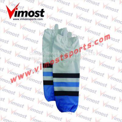 Apart from ice-hockey sock we also provide ice-hockey short, pant and jersey. Normally, we use #E as our main material, also known as the birds'eyes fabric, which is breathable and heavy-weight. Apparently, ice-hockey is a very intense sport, so the quality of the ice-hockey uniforms must be good enough, so that it is not damaged during the game, besides, #E material will make you feel comfortable and easy when playing.