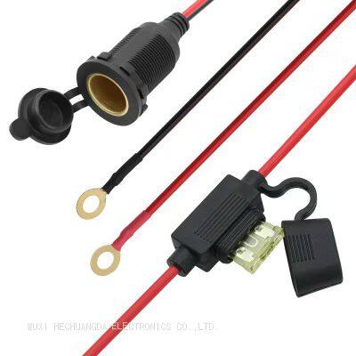 High power cigarette lighter threaded socket cables with fuse box circular thread cigarette lighter power cord