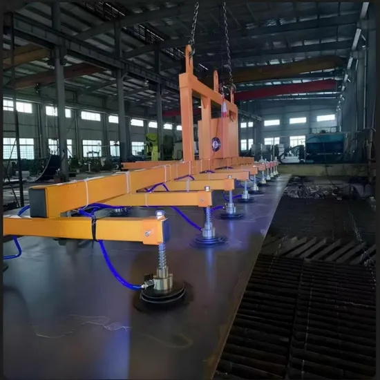6. Suction cup position adjustable and can be closed manually 7.Usually copperated with bridge crane to use in glass deep processing and handling job, or with cantilever crane to use in glass curtain wall installation job.