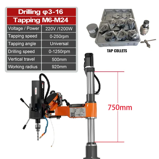 The arm is balanced and vertical by an aluminum alloy bracket, which allows thetapping spindle to mowe to any position