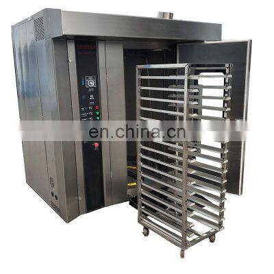 Product Description 32 trays electric hot air rotary oven/hot rotating furnace/bakery oven with high qualityJX series rotary hot air circulation baking oven divides electric heating type and fuel type two kinds and can be used to bake a variety of breads, cakes, poultry and various kinds of cakes. It is widely used in the canteens of food factories, bakeries, institutions, units, and military units, as well as in the individual food processing plants and in the bakery of cake houses.1. Assembled structure is used as a whole, the front surface is made of imported stainless steel plate material, and the baking room is made of imported aluminum plate.2. Active trolley-type grill, and adopts hook rotation, adopts forced forced hot air circulation heating with blower type, which greatly improves the heat transfer efficiency and shortens the heating time, so as to save energy, due to hot air rotation and rotation of the trolley, Therefore, the heating is absolutely uniform and the baked food has no color difference.3. In order to make the baked food taste better and the temperature is more suitable, an air volume adjustment and humidification device is set at the outlet of the hot air, and is particularly suitable for baking egg cakes, French breads, West Point and the like.parameter32 Tray rotary ovenPowerelectricitygasdiesel oilOutline dimension2640*1660*2700mm2640*1660*2700mm2640*1660*2700mmOvenware32tray(1time)32tray(1time)32tray(1time)Output power52KW3.8KW3.8KWWeight1800KG1810KG1810KGVoltage3N-3803N-380/2203N-380/220