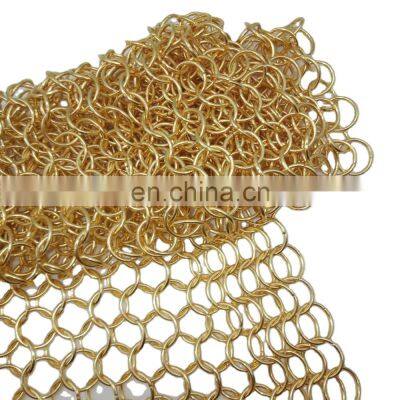 Products Pictures ShowDECORATIVE RING MESHRing mesh is made of small rings which is connected together by a ” S“ type connect piece. It is a kind of new decorative materials.Our ring mesh is made of carbon steel, stainless steel, brass and other materials. It mainly includes flat ring types mesh curtain, circle types ring curtains and big-small circle ring cross curtain. The ring mesh curtains feature versatility, unique texture, various colors, durability and flexibility. It's widely used for interior isolation, window screen, architectural decoration, ceiling treatments, etc.Product DescriptionMaterialStainless steel 304/316/316L wire , brass wire,copper wire and steel alloy etc.Standard Wire diameter0.7-3.0mm, 0.7mm, 1.5mm /1.8mm/2mm(other wire diameter also supplied)Ring inside diameter10mm-29mmRing outside diameter12mm-35mmRing diameter size20mm for standard (10mm,12mm,14mm,18mm also supplied)Product ColorStainless steel primary color ,silver, bronze, purple bronze , gold etc.ProcessBent in a ring, and finally to the two wire ends are welded together.Feature1. Fireproof: Its meting point is far higher than that of cloth curtain.2. Stable: No shrinks or stretches when used.3. Mildew proof: It will be fine when used in humidity conditions.4. Light diffusing: Light filtration is controlled by curtain fullness and light conditions.5. No Maintenance: Stains can be washed off by mild soap water.6. Permanent: It will last longer except you don’t like to hang it any more.Our AdvantagesOur ring Mesh Features & Advantages1.They form a unified and polished to a high gloss surface.2. And they require very little maintenance and can be 100 percent recyclable3. Withstand long term both the salty air and the stresses caused by wind.4. In architectural design it meets both functional and aesthetic functions.5. It is more suitable for used as decorative materials, such as ceiling, partition and background decoration.Product Paramenters12.0 stainless steelMaterial: stainless steelRing Diameter: 12.00 mmWire Gauge: 1.10 mmWeight: c. 3.06 kg/m²Tensile Strength: approx 53 kN/mOpen Area: c. 63 %12.0 bronzeMaterial: bronze Ring Diameter: 12.00 mmWire Gauge: 1.10 mmWeight: c. 3.45 kg/m²Tensile Strength: c. 33 kN/mOpen Area: c. 63 %7.0 stainless steelMaterial: stainless steel 1.4404Ring Diameter: 7.00 mmWire Gauge: 0.70 mmWeight: c. 2,2 kg/m² Tensile Strength: c. 23 kN/mOpen Area: c. 60 %7.0 bronzeMaterial: bronze Ring Diameter: 7.00 mmWire Gauge: 0.70 mmWeight: c. 2,49 kg/m²Tensile Strength: c.15 kN/mOpen Area: c. 60 %Product packagingPacking of our ring meshInorder to prevent the product from being damaged during transportation , we use the following packaging methods .1 Bubble film with carton2 Bubble film with wooden caseSpecial packing can be customized according to your require .ApplicationsApplication of our ring meshWidely used for exterior design, interior design, sun protection, facades, security areas, exhibition design, shop fitting, door curtain, staircase walls - railings, art objects.You can use the flexible mesh making into chain mail, because it does not matter if ring fencing turned, bent, stretched, distorted or suspended.Company ProfileAnping Dongjie Wire Mesh Products Co., Ltd.We are an old factory with a history of 25 years, with rich experience and perfect quality management system.This is a photo of our factory.Anping Dongjie Wire Mesh Products Factory is founded in 1996 with 10000sqm areas.We have more than 100 professional workers and 4 professional workshops: expanded metal mesh workshop, perforated workshop, stamping wire mesh products workshop ,molds made and deep-processing workshop.Exhibition