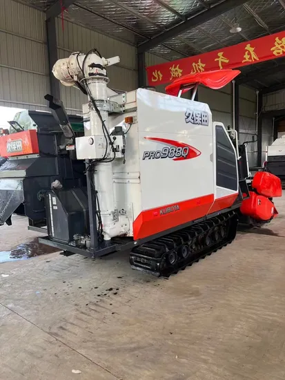 Kubota 4LZ-4 (PRO988Q) full-feed crawler harvester product features Suitable for professionals who aim for high profits, this crawler-type grain combine harvester combines high profits, fast operation and easy maintenance. Rotating and high-speed grain unloading: The 3.8m long grain unloading drum can be rotated 255°, which is very convenient for loading grain in trucks or discharging grain across field ridges. The large diameter design enables high-speed grain discharge and saves grain discharge time.