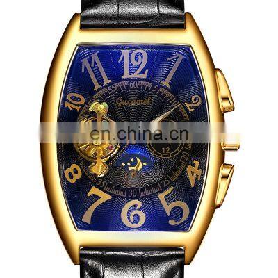 Product Description Gucamel hot sale Men's Watch tonneau dial automatic mechanical leather watch strap Xingchen Tourbillon hand men's watch Packaging & ShippingCustomize package as per your request:Packing standardFree simple packing: pc/opp bag, 20 bags/box, 10 boxes/ctnCustomize gift packing: 1 piece in one box with pillow protect.According to client's request.Shipping cost can be included into cost:We can ship via DHL, FedEx, UPS, EMS, TNT, Aramex E-packet etc.Our Services24 Hours Offer Product ConsultingAccept OEM order, custom your LOGO to create your own brand.Variety watches styles in STOCKS for you choose to WHOLESALE.If you are a online shop, we can offer you ONE STOP DROP SHIPPING service.Company InformationShenzhen South America Watch Co., Ltd is a top professional watch manufacturer in SHENZHEN CHINA.In factory there are 100 watch skilled workers, 20 QC, 2 designers, 10 sales, 2 purchasers,and few administrators. Mainly product is watch,such as quartz watch, automatic watch, men's watch, lady watch made from stainless steel or alloy. the requires depend on you. Our NIBOSI branded is registered in Swiss, US and China. And our own brand NIBOSI watches for wholesale annual. Very good competitive price. Delivered Duty Paid drop shipping service.