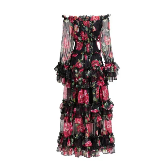 Product Description summer chiffon floral print quality fashion dress for women maxi length