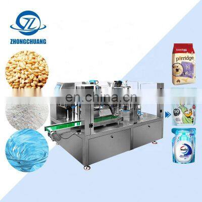 Product ParamentersItem NO.ZC-R200/250DimensionsL2460mm×W1830mm×H1460mmPacking Speed16-60 Bags/min (depending on products character and filling volume)Packing Bag SizeL: 100-350mmW : 60-200mm/80-250mmWeight1800KGAir Compressed air consemed≤0.6m³ / minAccuracy±1g (≤100g) / ± 1%( >100g) according to materialApplicationSuitable for liquid or semifluid products packing, such as beverages, juice, ketchup, bechamel etc.Working Procedure1.Bag feeding2.Coding3.Opening4.Filling A5.Filling B6.Heat sealing A7.Heat sealing B8.Forming and outputDescription1.According to customer demand for customized, to recommend the appropriate products to customers.2.Storage racks devices which can Satisfy the products short stop ,which can keep the production line work continuously.3.Good service,If you have any questions, you can communicate by telephone video.Recommend ProductsProducts DescriptionCompany ProfileFAQTrade patterns 1. Lead time: 15-20 working days after receive deposit2. MOQ: 1 set.3.30% deposit+ balance payment before delivery by T/T, western union, cash.4. Loading Port: Shantou or Shenzhen Port Export Process 1. We will prepare goods after receive deposit 2. We will send goods to your warehouse or shipping company in China.3. We will give you tracking number or Bill of loading when your goods is on the way 4. Finally your goods will arrive your address or shipping port Frequently Asked Questions Q: First time import, how can I believe that you would send products? A: We are verified company by Alibaba to make transaction success, we support and recommend you to pay money to us by Alibaba Trade Assurance.Q: How about the quality of your product?A: Our products manufactured strictly according to national and international standard-- We have ISO certification-- We take a test on every product before delivery.Q: How to choose the machine type for our bags? A: Pls support us the following information about the bag and the food. 1) Bag pattern (Bag samples or pictures would be appreciated.)2) Bag size 3) The filling weight or volume 4) Material of food: powder/liquid/paste/granular/massiveness Q: What aftersales service or any question about products?A: This machine enjoys 1 year warranty