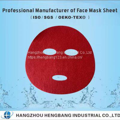 Product Description Chinese red mask sheet is made of lyocell fiber and produced by spunlacing process. The liquid absorption rate is several times higher than that of ordinary non-woven facial mask, and this Chinese red cloth is skin-friendly, water-locking and moisturizing perfect balance. Used as the base of a face mask sheet. 1.Softness: the mask sheet is mainly made of copper ammonia and Lessel fiber. It has good softness and can closely fit the furlines covering the skin. 2.Smooth:The surface is delicate and smooth to the touch. 3.Fitness:Excellent soft surface, water absorption and seepage, to ensure that the essence can be better absorbed by human skin; Skin repellent surface breathable water not volatile, can completely solve the mask material moisture volatile defects.