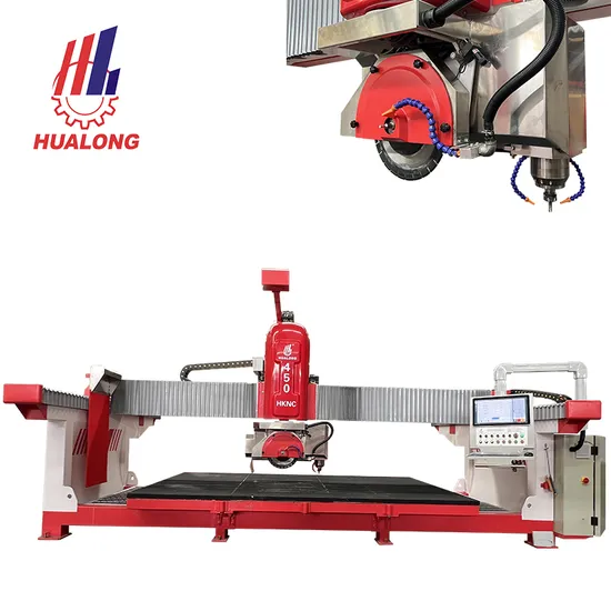 CNC Stone Machine HKNC-450 plus with 5 axis interpolation controlled, is a multifunctional CNC stone cutting, shaping and engaving machine built with the needs of workshops in mind, combining simplicity with maximum versatility for a minimum investment budget. It is popularly used for cutting slabs and blocks of both natural and synthetic stone, and ceramic. Functions: * make vertical, inclined& horizontal Cut with Disc Blade * cut curves with Contour Cutting * machine with the Core Tool such as drill, end mill & excavation wheel * Incremental routing for sink cutting, profiling & engraving Match these capabilities with Italian ESA CNC system, digital servo motors and CAD CAM drawing software to make all kind of cuts with ease. HKNC-500 can also been equipped with a vacuum manipulator for the automatic moving of slabs to optimise workpiece usage during the cutting process.